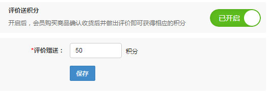 评价送积分:开启此功能,买家在确认购买后并做出相应的评价可获得相应的积分赠送。