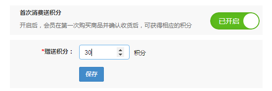 首次消费送积分开启后,会员在第一次购买商品并确认收货后,可获得相应的积分。
