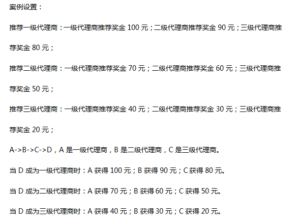总部后台→会员→代理商:代理商推荐奖,增加“只有直接代理商能拿推荐奖”的开关,开启后,只有直接代理商能拿推荐奖,间接代理商拿不到推荐奖。 关系:A→B->C->D,A是一级代理商,B是二级代理商,C是三级代理商 D是会员 当D成为代理商之后,只有C(直接代理商)能拿推荐奖,A,B拿不到推荐奖。
