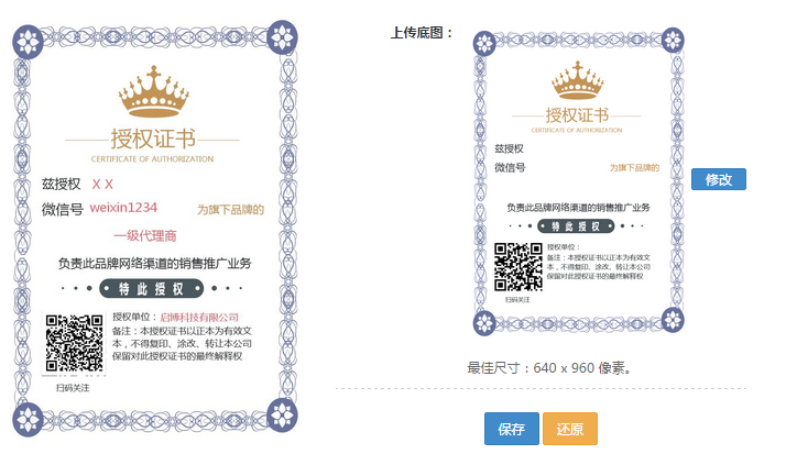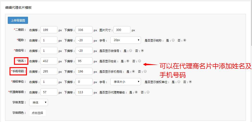 2.代理商名片新增加姓名、手机号、授权单位、代理商等级等设置项