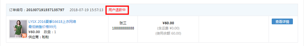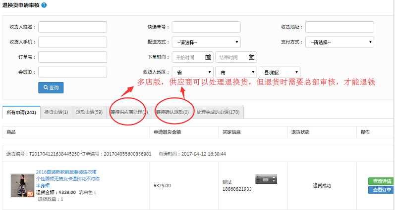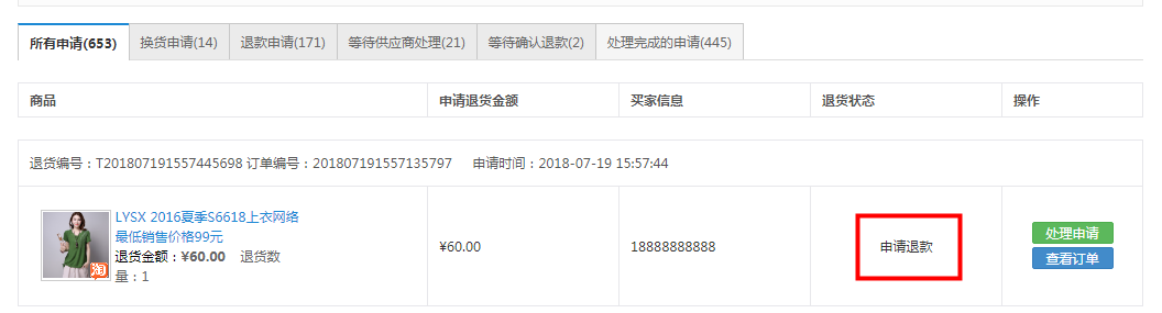 ·所有关于订单的退换货都可以在此查看,处理相关的售后问题。如下图所示: