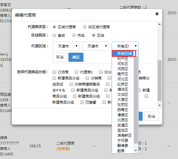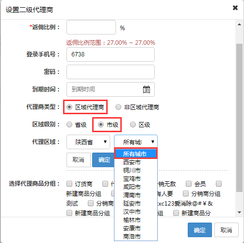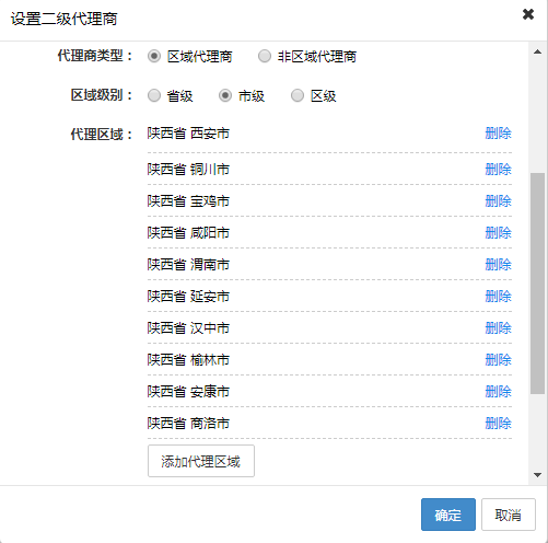 设置代理商的时候,代理区域(市级)可以设置所有城市