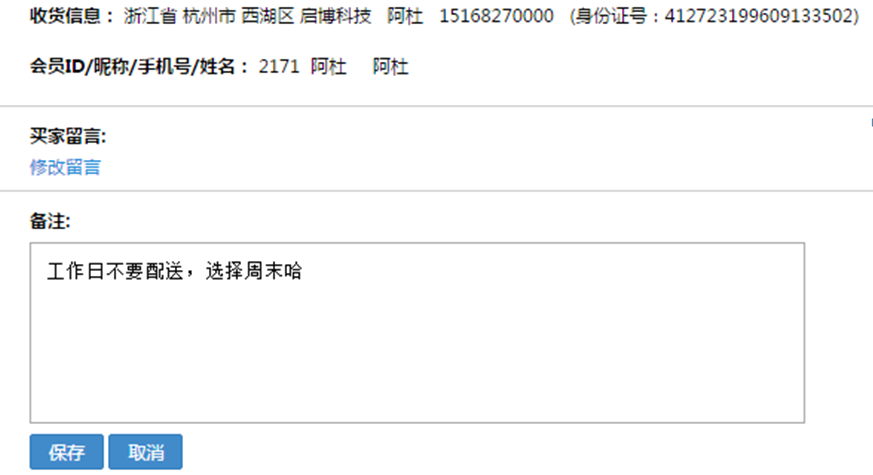 卖家备注信息栏对门店开放,门店可以在后台看到总部对这笔订单的备注信息