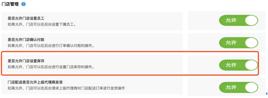 当门店设置中“是否允许门店设置库存”关闭时,总部后台仍可设置门店库存