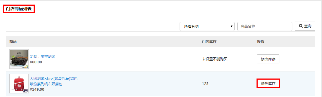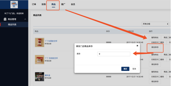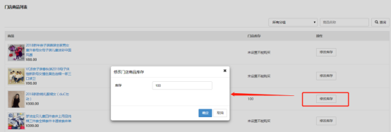 操作步骤: 总部后台→会员→门店→门店管理:门店列表操作项增加查看“门店商品”的功能,且总部后台商家可以修改门店商品的库存。