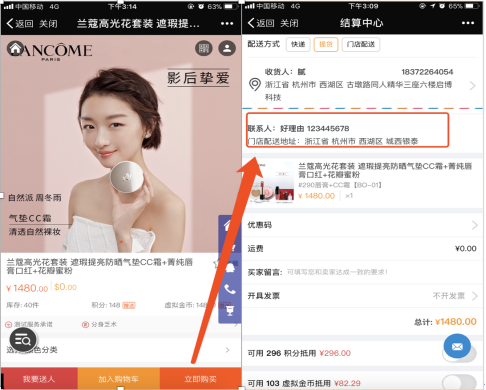 门店自提:目前自提地址只支持到区,优化后支持到镇。