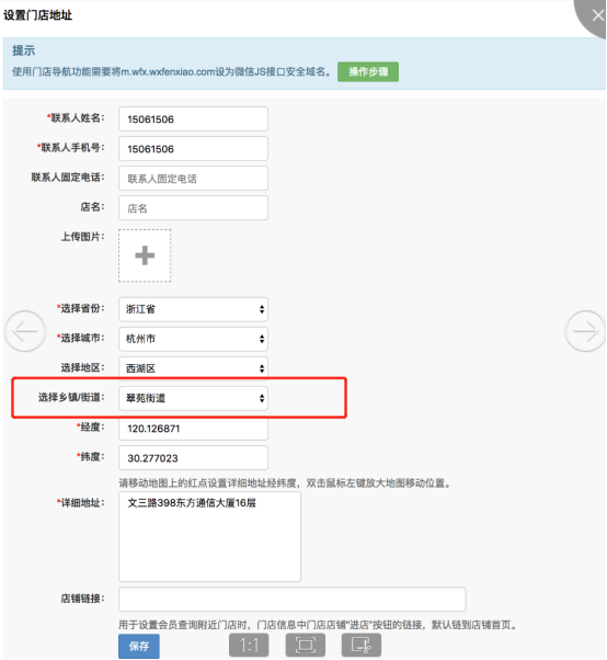 设置门店地址:直接点击“门店地址”添加相应的门店地址即可。 点击“批量设置分组”可以进行多个门店地区归类。在设置之前请先进行“添加门店分组”