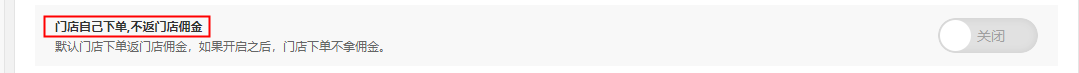 新增配置项“门店自己下单,不返门店佣金”,功能与“代理商自己下单,不返代理佣金”类似。默认门店下单返门店佣金,开启之后,门店下单不拿佣金。