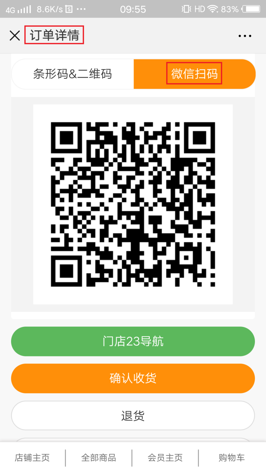 手机端自提的订单,相应门店可以直接用微信扫描核销订单,无需到PC端后台用扫码枪核销。