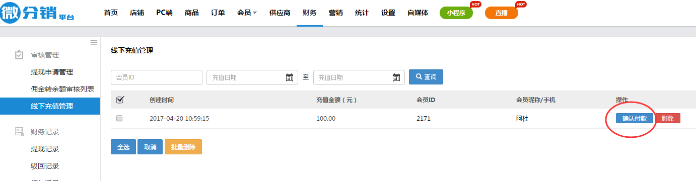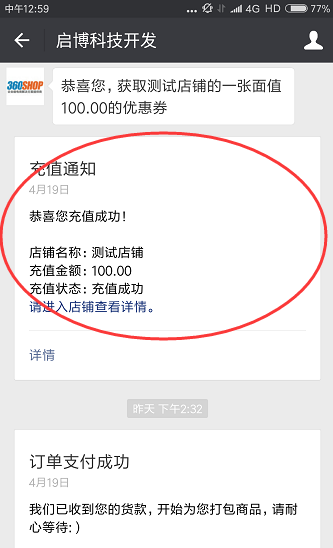 会员选择线下充值后,后台对该充值记录审核,点击确认付款后,会员的余额会自动加上充值的金额,可在会员余额变动查询。会员微信公众号也会收到充值通知。