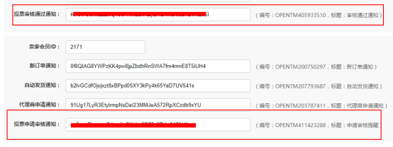 ② 投票申请审核通知:会员报名参加投票选举,申请后,商家(绑定的卖家会员ID)会收到投票审核通知。