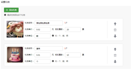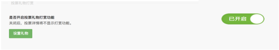 默认关闭;开启后投票可以进行打赏功能,可以设置投票礼物。