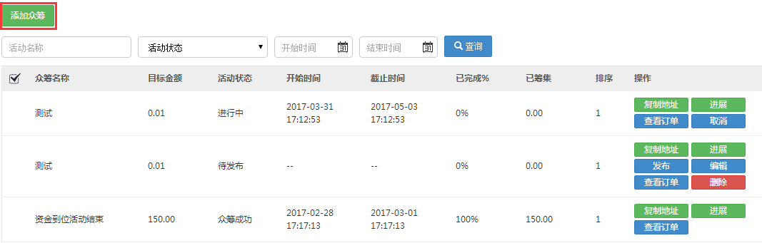 1.使用此功能注意:微众筹禁止用于P2P金融及延伸相关行业、慈善募捐 、 博彩及彩票相关行业以及按国家规定需要前置审批及限制行业。 如发现违规,系统有权在未通知的情况下暂停提供众筹等相关功能。 进入众筹列表,可以设置是否要在手机端显示