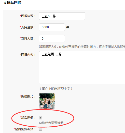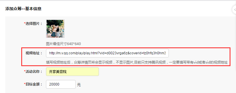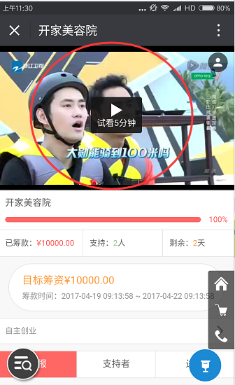 点击【添加微众筹】 众筹可以设置是否返佣,活动页面顶部可以展示视频