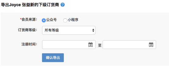 操作步骤: 总部后台→订货商→订货商管理→下级订货商新增导出及查看下级会员功能 可根据会员来源,会员等级,注册时间来选择导出类型。