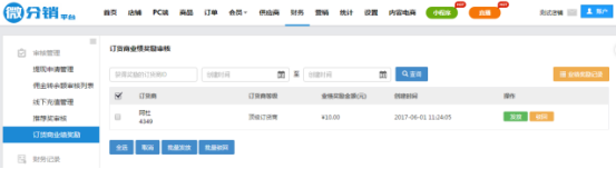 可批量操作发放和驳回,并在“业绩奖励记录”中可查看发放或者驳回的记录。
