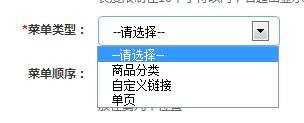 这里我们讲一下”菜单类型“,菜单类型分为:商品分类、自定义链接、单页三种。 商品分类:分组管理里添加商品分类,如:上衣、春装等 单页即PC端的文章页面。 如下图所示: