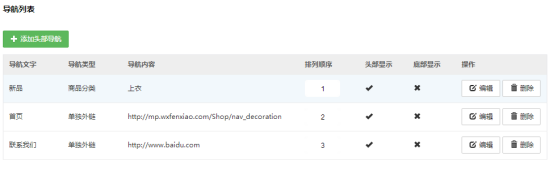 导航菜单添加好以后,返回到菜单列表进行相应的管理。