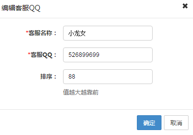 开启是否显示PC端客服QQ。此功能仅限于【全网版】 点击开启按钮,进行客服QQ的添加。