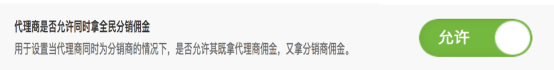 默认是不允许的状态,开启后会员既是代理商又是分销商时,下级及其下单购买商品时,可以同时拿到分销商佣金和代理商佣金。