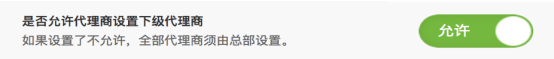 默认是允许状态,关闭后。代理商不能设置下级代理商,只能由总部设置。