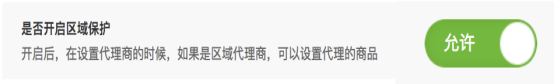 默认是不允许,开启后,在设置代理商的时候,如果是区域代理商,可以设置代理的商品。( 分组的形式设置,可以选择多个商品分组)。计算佣金的时候,判断订单商品是否为区域代理商代理的商品,如果不是,这该区域代理商佣金会扣除。