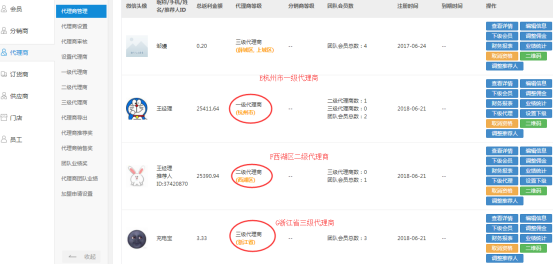 可以设置区域代理商的区域级别(省级、市级、区级)