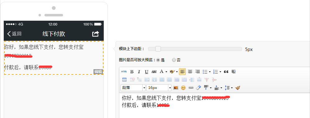 提示:买家使用线下付款后,在线下转账给卖家,卖家在后台确认付款。功能开关:开启后,结算时可以使用线下付款