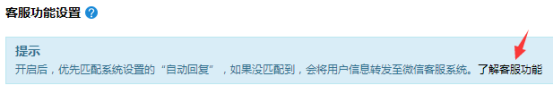开启后,优先匹配系统设置的“自动回复”,如果没匹配到,会将用户信息转发至微信多客服系统。