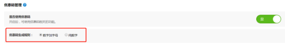 【优化】优惠码生成可以选择都是数字或者字母加数字