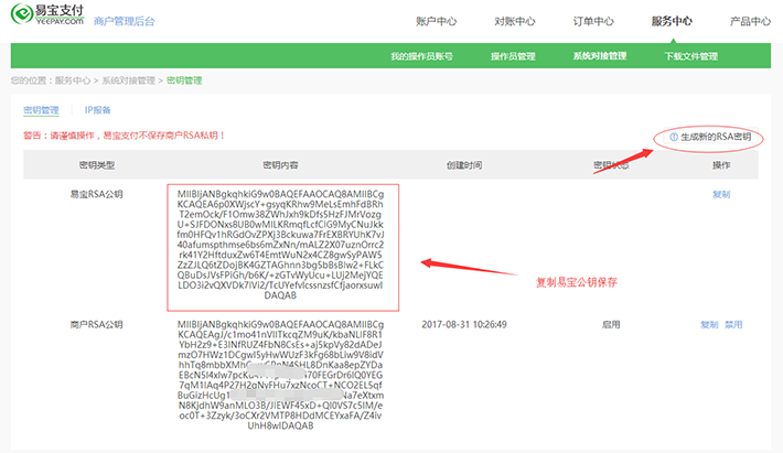 2.生成商家私钥,记录易宝公钥