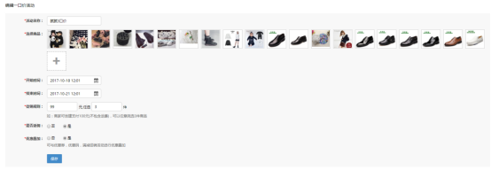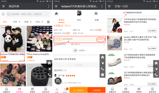 ① N件商品多少钱,如一个页面20个商品,随意购买3件商品,固定金额是99元,会员可以随意去拼凑这3件商品 ② 买家在商品池内选择一定件数的商品,满足活动条件后将享受活动优惠;