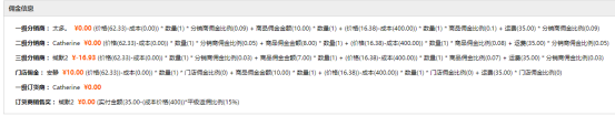 ⑥ 其他: 开启利润返佣时:一口价的订单,计算销售奖的时候是(实付金额-几个一口价商品的成本价总和)*销售奖比例; 订货商也可以参与一口价的活动。比如,A(一级)--B(二级)--C(会员),A的进货价是60元,B的进货价是70元,一口价商品是100元2件,商品N原价是90元且参与了100元2件的活动,C下单买了2件N付了100元,也就是每件商品优惠价是50元,因为C购买的商品N的价格小于订货商的进货价,所以C下单,A和B都拿不到订货商的差价。