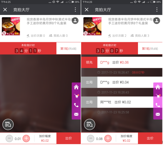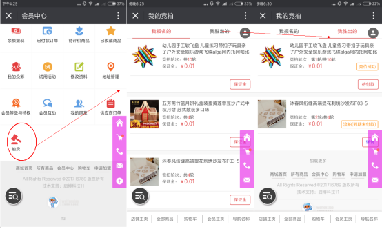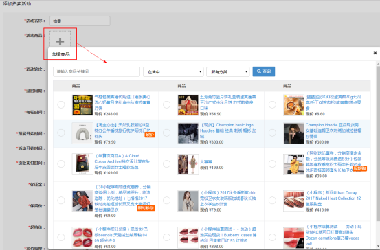 1)活动商品:已经参与营销活动的商品不能再参与拍卖活动,添加商品时,已经参与活动的商品都会有相应的活动标注,方便商家选择拍卖商品;