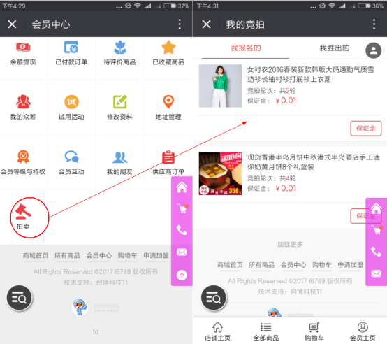 操作步骤: 总部后台→营销→吸粉营销:设置“拍卖”的功能,会员交纳保证金就可以参与拍卖,出价最高者可以获得拍卖商品。 ① 添加拍卖活动: