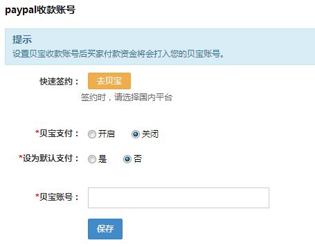 设置贝宝收款账号后买家付款资金将会打入您的贝宝账号。并且要点击开启再点击保存。