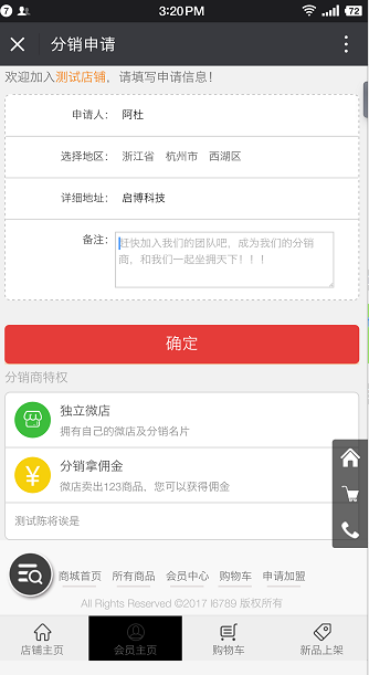 设置申请成为分销商所满足的各项条件分销商申请时,验证身份证唯一性,同一个人可以用自己的身份证申请分销商和代理商;或者申请分销商和订货商。但是不能两个人都用一个身份号申请。