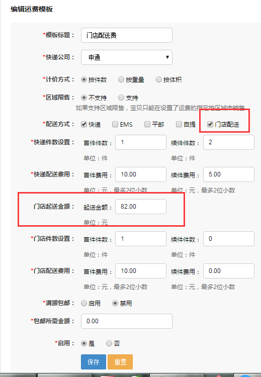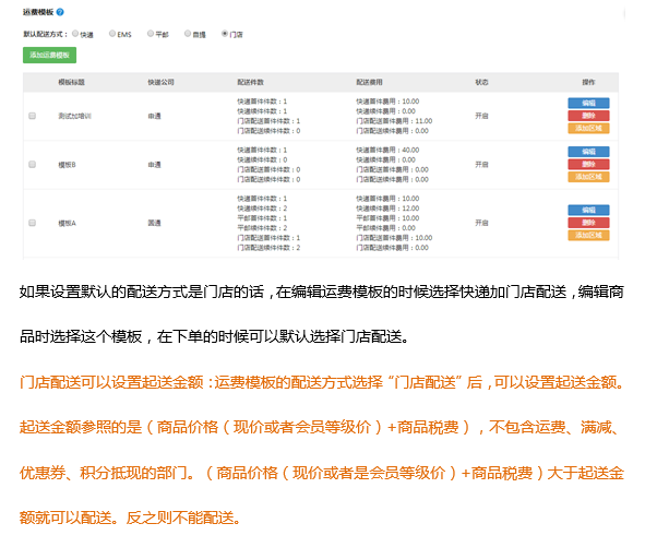 运费模板可以设置默认的配送方式,所有的运费模板都可以在此处进行查看、修改、添加与删除。