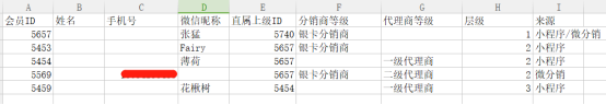 操作步骤: 总部后台→会员→会员管理→会员列表:选择“导出全部下级”时,增加下级的分销商等级和代理商等级身份。如果小程序和微分销互通了,这也会导出小程序相关的下级。