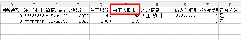 导出会员的时候可以导出虚拟币数据