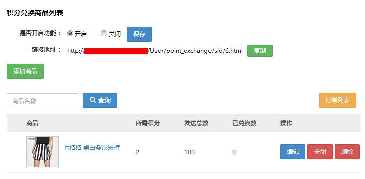 积分兑换商品:在该页面设置积分兑换商品,开启该功能,在app前端就可以看到积分商品。