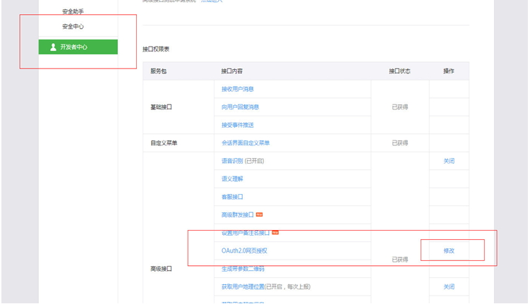 注:微信公众后台回调URL设置:开发者中心找到OAuth2.0网页授权,点击修改