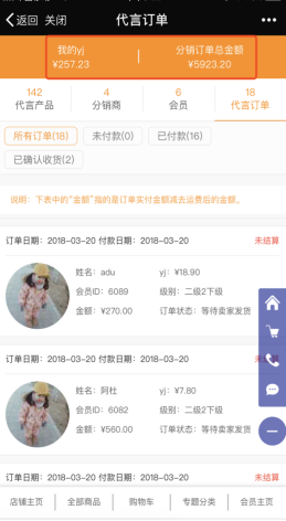 操作步骤: 手机端→会员中心→分销中心→分销订单页:增加分销订单总金额 统计金额包含所有能拿到佣金订单总金额(不包含删除订单)
