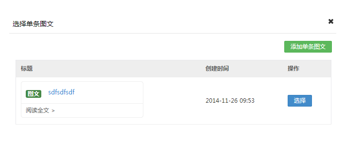 选择类型单条图文,可以选择单条图片和添加单条图文