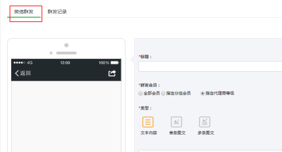 操作步骤: 总部后台→营销→消息群发:短信/微信/站内信群发增加选择代理商等级。