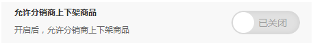 1、允许分销商上下架商品。选择关闭后,分销商不能自己加架分销商品。