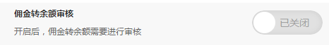 2、佣金转余额审核。开启后,佣金转余额需要审核发放。