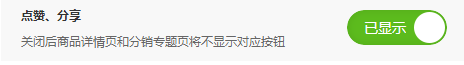 8、点赞分享。开启后,商品详情页、分销专题页将会显示点赞和分享的按钮。