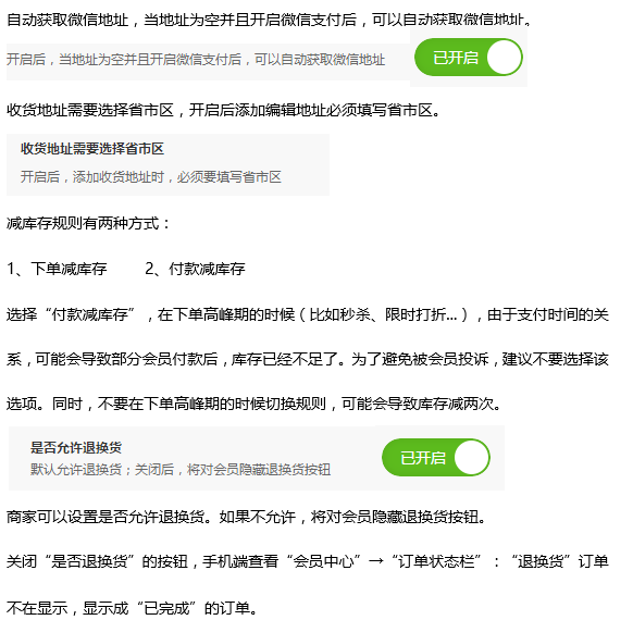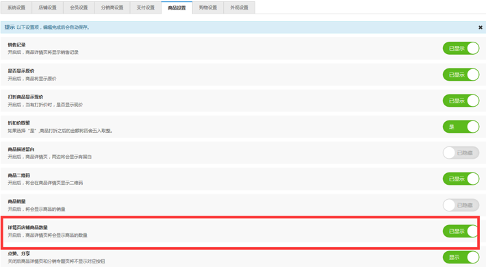 1、销售记录。开启后,商品详情页将显示销售记录。