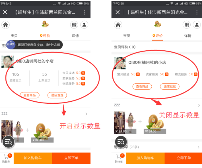 13.商品详情页中店铺宝贝可以隐藏商品数量显示